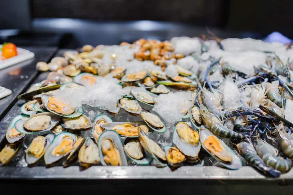 - Seafood is fresh and displayed on ice